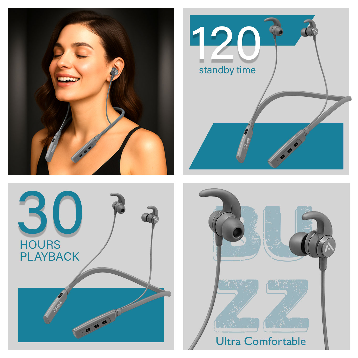 Albalet CLASSO Wireless Bluetooth Neckband | Deep Bass Type-C Fast Charging Bluetooth (Blue, In the Ear)